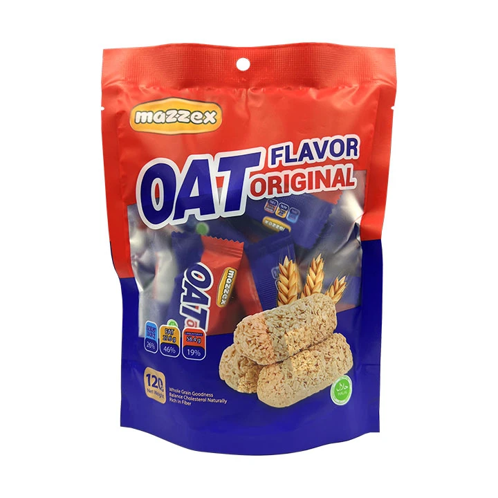 شکلات های شیری جو دوسر Mazzex با جو دوسر سبوس دار طبیعی و مقداری شکلات شیری خوشمزه بسته بندی شده اند.