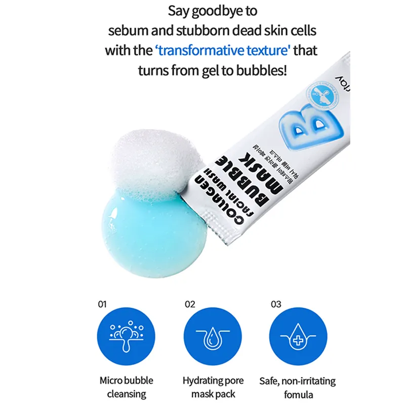 هنگامی که ماسک بر روی پوست خشک اعمال می‌شود، با اکسیژن واکنش داده و حباب‌های ریز و متعددی تولید می‌کند. این حباب‌ها به پاکسازی عمقی منافذ و لایه‌برداری ملایم سلول‌های مرده پوست کمک می‌کنند.